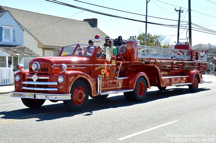 Pictured is a 1951 Seagrave Model 66 open-cab tractor-drawn aerial truck owned by Masonville Fire Comapny of Mt. Laurel, NJ. It was Mt. Laurel's first aerial fire truck, purchased from Union Fire Company in Mt. Holly in 1976. It was in service until 1988.