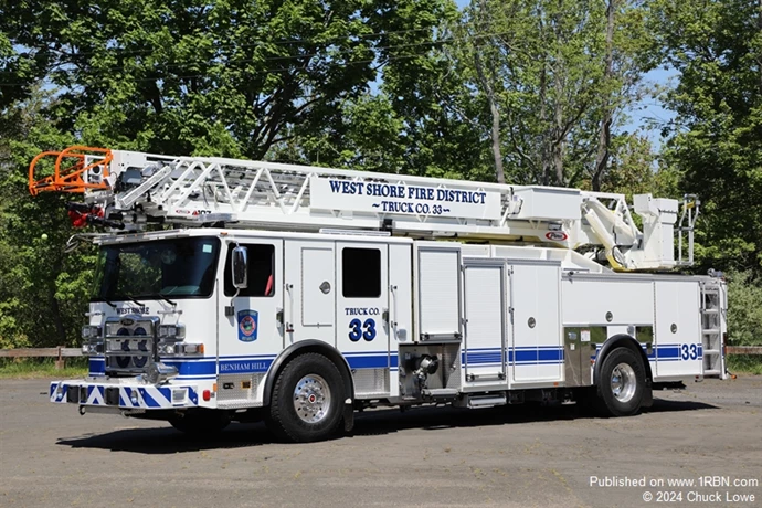 The West Shore Fire District, located in West Haven, recently placed their new 2023 Pierce Enforcer PUC 1500/470/30F/107' quint in service as Truck Company 33.