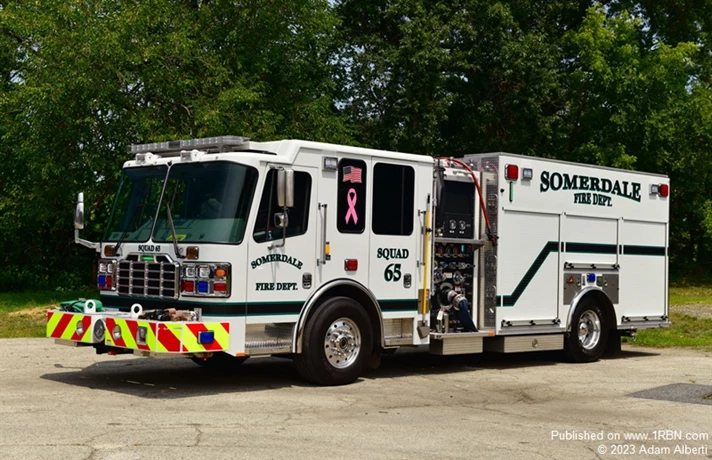 The Somerdale Fire Department operates this 2021 Ferrara Cinder pumper as Squad 65. It has a 2000-GPM pump and 500-GWT. It was sold by FF1 of Sparta, NJ.