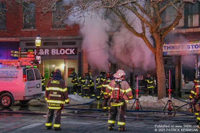 LOWELL, MA - Lowell Firefighters arrived to find heavy smoke showing from a taxpayer on the early morning of February 24th. Companies found a deep-seated basement fire in a storefront that had already extended to the exposure stores. Command struck a 2nd and 3rd alarm, bringing in mutual aid to the city. Companies stretched multiple hand lines to knock down the main body of fire.