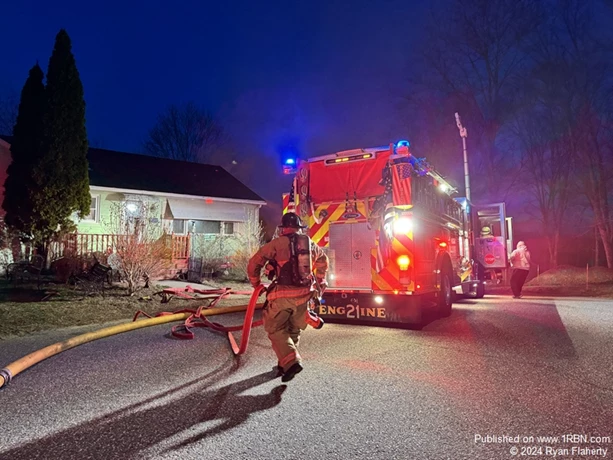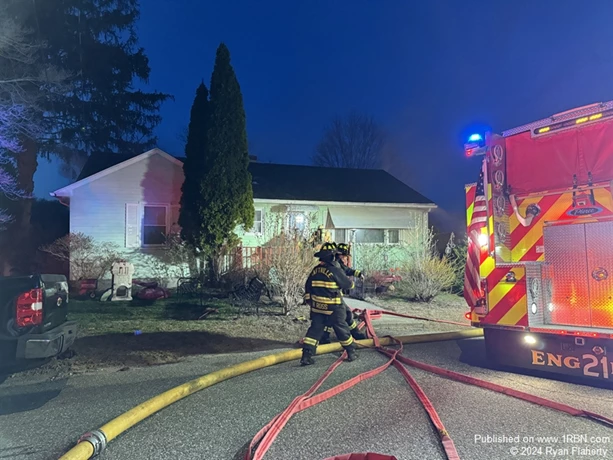 NORWICH, CT - Around 7:26 P.M. on Sunday, March 31st, the Taftville Fire Department with Norwich’s Engine 2 & Truck 1 were dispatched to 12 Fontaine Court for a possible house fire. Car 20 quickly arrived reporting smoke showing with an active fire in the basement. Engine 21 stretched a 1.75” hose to the 'Delta' side while Tower 25 cut the garage door. The crew was able to advance their line into the garage and extinguish the fire. Engine 2 laid in from a hydrant on Merchants Avenue which fed Engine 21. Following that, they stretched a 1.75” hose line through the front door and checked for extension. The Norwich Fire Marshal’s Office is investigating.