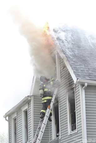 Photo by FRANK SAIAAudubon FF Dan Lepone vented the attic window.