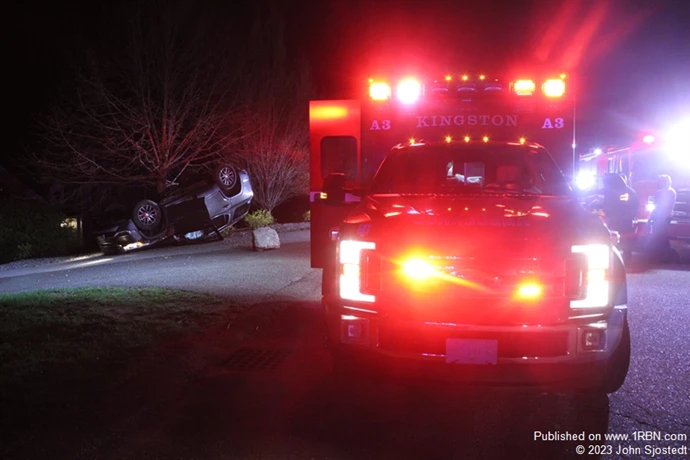 KINGSTON, MA - Firefighters responded to the area of 203 Country Club Way on April 29th for an MVA with rollover. On arrival, companies found a vehicle on its roof and all occupants self-extricated. Two patients were transported to South Shore Hospital with non-life-threatening injuries.