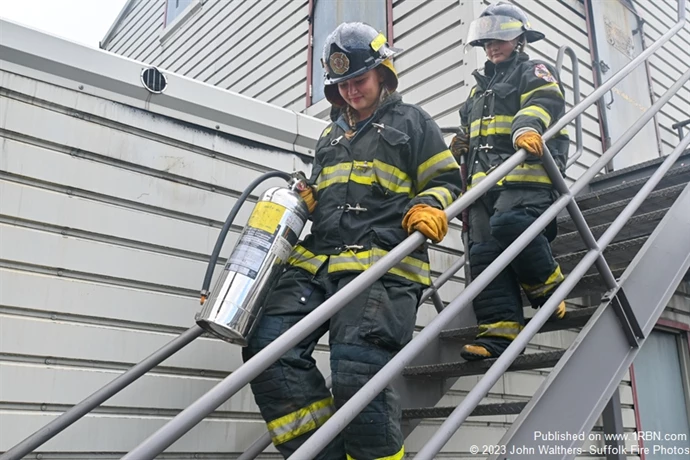 Photo by John Walthers- Suffolk Fire PhotosSetauket Jrs exist the search building.
