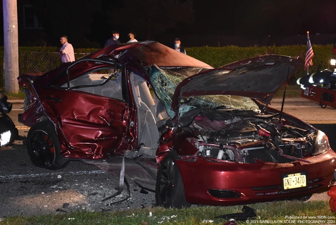 BRENTWOOD, NY - A Brentwood man has been charged with driving while ability impaired by drugs following a motor vehicle crash on Hilltop and Second Ave. that killed a woman and injured eight other people on Saturday night, October 3rd. Brentwood firefighters used hydraulic tools to free occupants of the Jeep and red car involved in the crash while multiple ambulances from several area departments transported nine people, one of which died from injuries sustained after being in the passenger's seat of the red car.