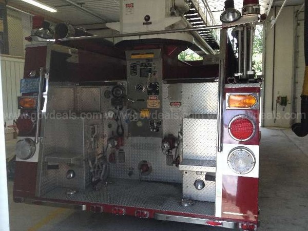 1987 Pierce Arrow 50' Tele-Squrt. Tele-Squrt Model B5042. Ladder NOT operable. Detroit Engine, 350 H.P. Diesel Engine with 4676.2 hours. It has an Allison Transmission Model HT-740D. Vehicle has a Waterous Pump Model CSU 1500 g.p.m.. Vehicle is Red with white Stripe. It has a 750 gallon steel water tank. Vehicle has a black interior. Vehicle sold strictly as is. Vehicle last serviced 11/2011.